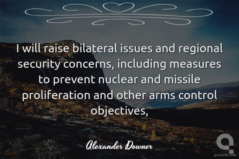 I will raise bilateral issues and regional security concerns, including measures to prevent nuclear and missile proliferation and other arms control objectives,
