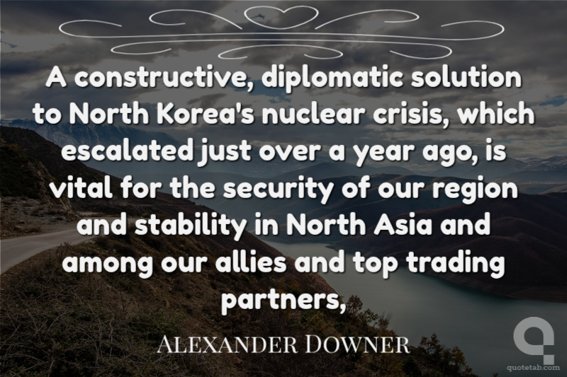 A constructive, diplomatic solution to North Korea's nuclear crisis, which escalated just over a year ago, is vital for the security of our region and stability in North Asia and among our allies and top trading partners,