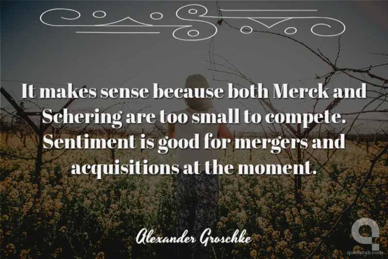 It makes sense because both Merck and Schering are too small to compete. Sentiment is good for mergers and acquisitions at the moment.