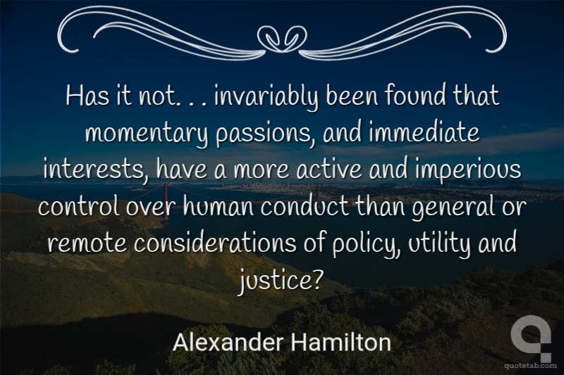 Has it not. . . invariably been found that momentary passions, and immediate interests, have a more active and imperious control over human conduct than general or remote considerations of policy, utility and justice?