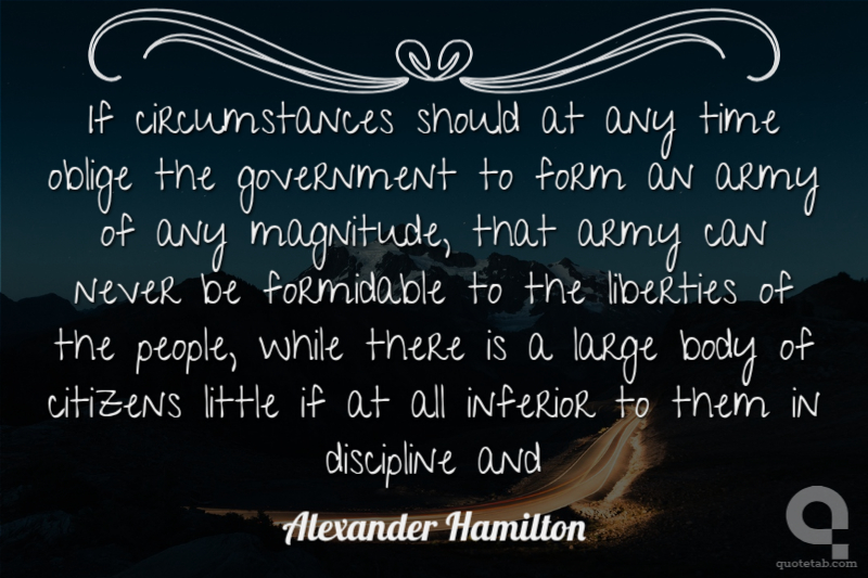 If circumstances should at any time oblige the government to form an army of any magnitude, that army can never be formidable to the liberties of the people, while there is a large body of citizens little if at all inferior to them in discipline and