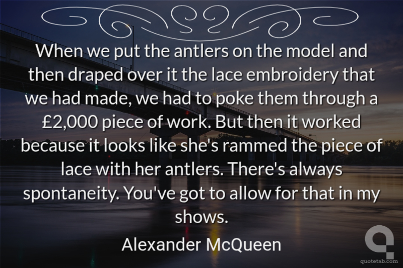 When we put the antlers on the model and then draped over it the lace embroidery that we had made, we had to poke them through a £2,000 piece of work. But then it worked because it looks like she's rammed the piece of lace with her antlers. There's always spontaneity. You've got to allow for that in my shows.