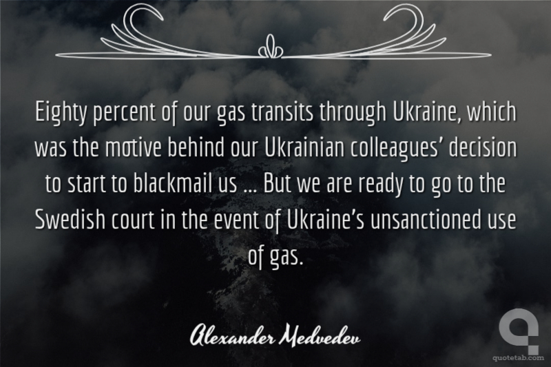 Eighty percent of our gas transits through Ukraine, which was the motive behind our Ukrainian colleagues' decision to start to blackmail us ... But we are ready to go to the Swedish court in the event of Ukraine's unsanctioned use of gas.
