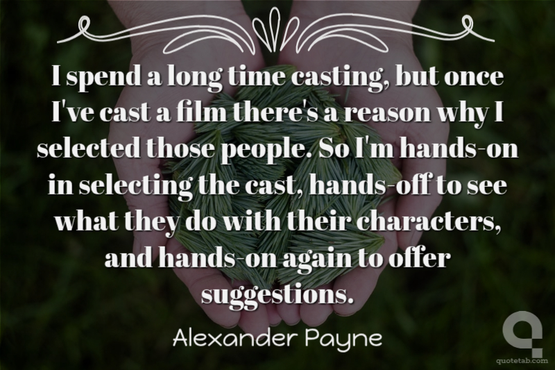 I spend a long time casting, but once I've cast a film there's a reason why I selected those people. So I'm hands-on in selecting the cast, hands-off to see what they do with their characters, and hands-on again to offer suggestions.
