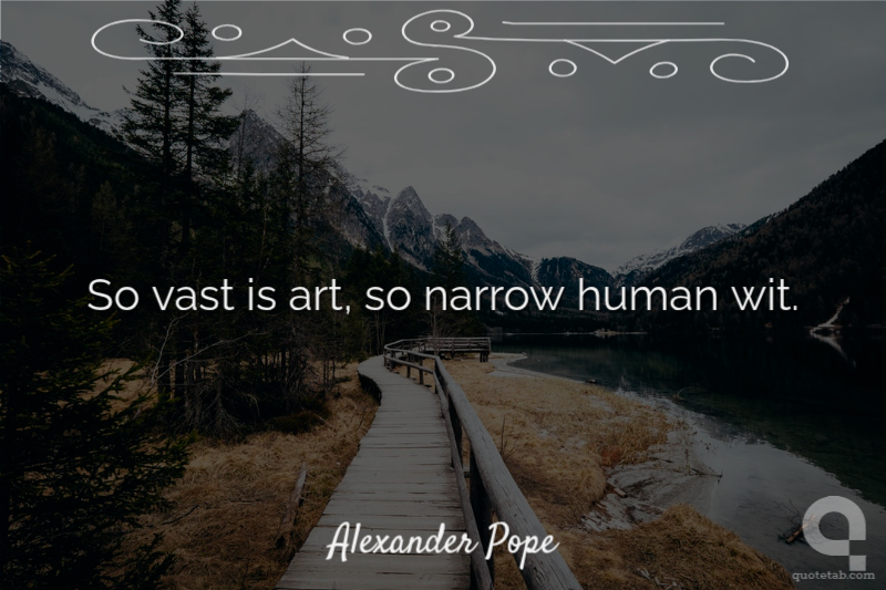 First follow Nature, and your judgment frame By her just standard, which is still the same: Unerring nature, still divinely bright, One clear, unchanged, and universal light, Life, force, and beauty must to all impart, At once the source, and end, and test of art.