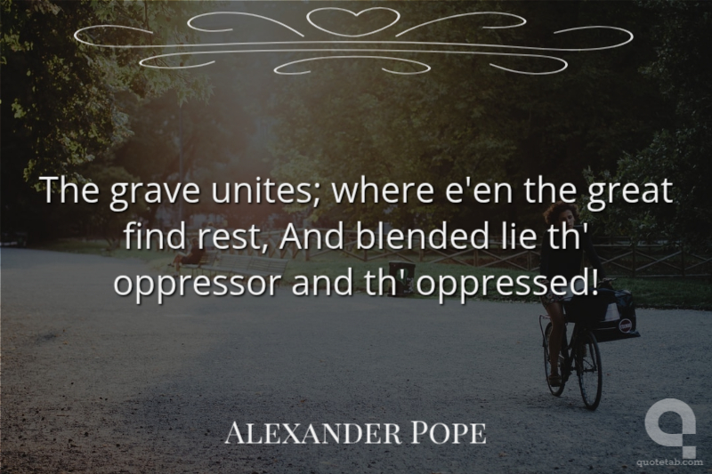 The grave unites; where e'en the great find rest, And blended lie th' oppressor and th' oppressed!