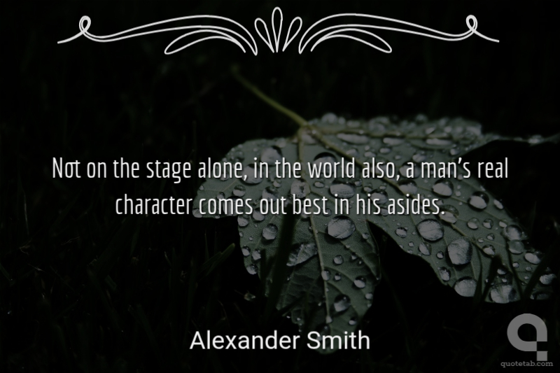 Not on the stage alone, in the world also, a man's real character comes out best in his asides.