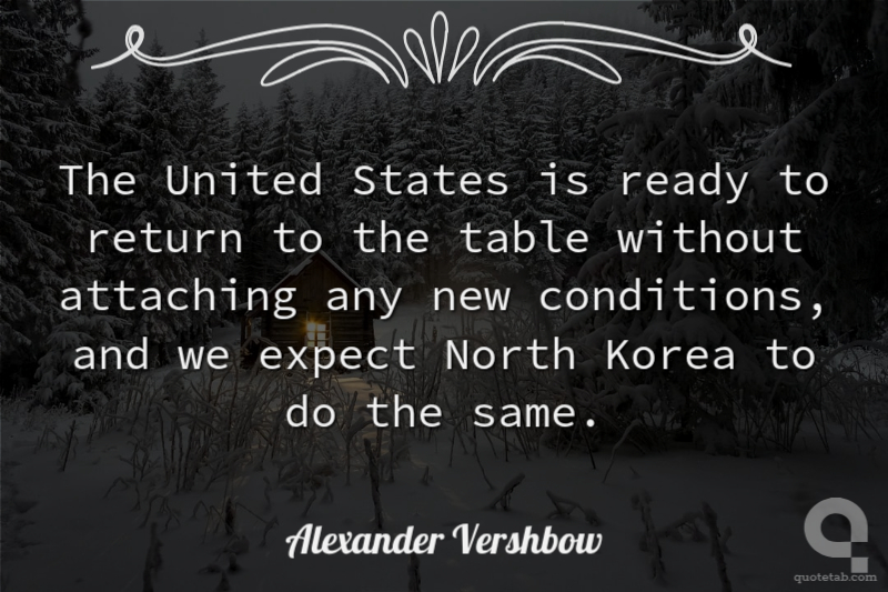 The United States is ready to return to the table without attaching any new conditions, and we expect North Korea to do the same.