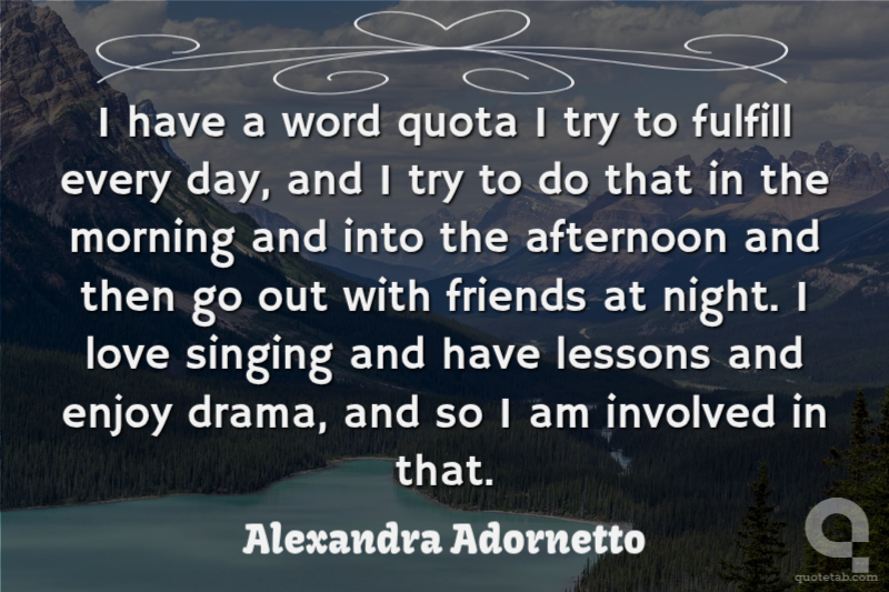 I have a word quota I try to fulfill every day, and I try to do that in the morning and into the afternoon and then go out with friends at night. I love singing and have lessons and enjoy drama, and so I am involved in that.