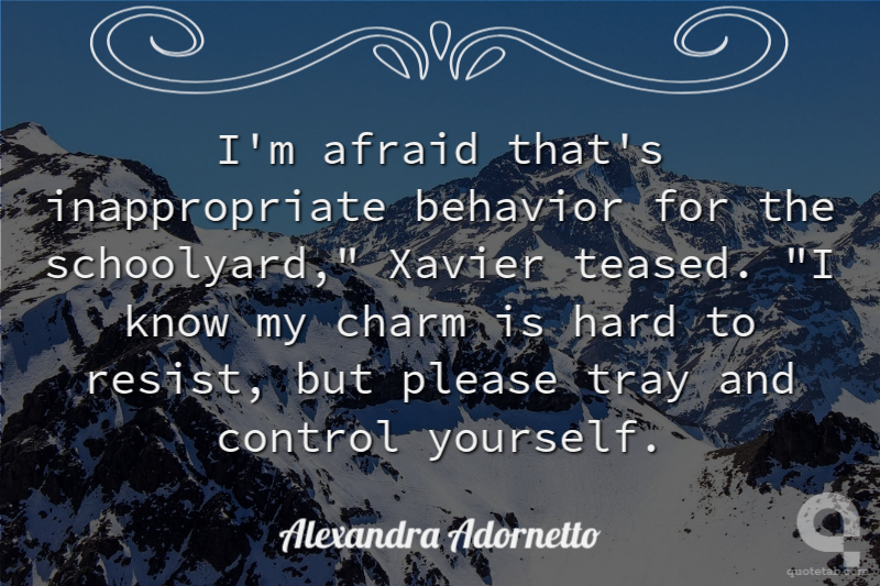 I'm afraid that's inappropriate behavior for the schoolyard," Xavier teased. "I know my charm is hard to resist, but please tray and control yourself.