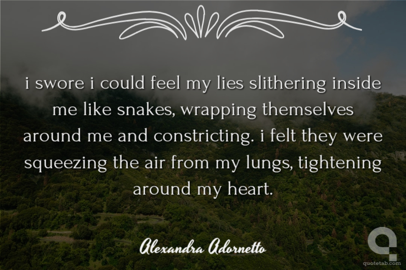 i swore i could feel my lies slithering inside me like snakes, wrapping themselves around me and constricting. i felt they were squeezing the air from my lungs, tightening around my heart.