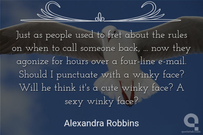 Just as people used to fret about the rules on when to call someone back, ... now they agonize for hours over a four-line e-mail. Should I punctuate with a winky face? Will he think it's a cute winky face? A sexy winky face?