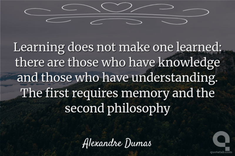 Learning does not make one learned: there are those who have knowledge and those who have understanding. The first requires memory and the second philosophy