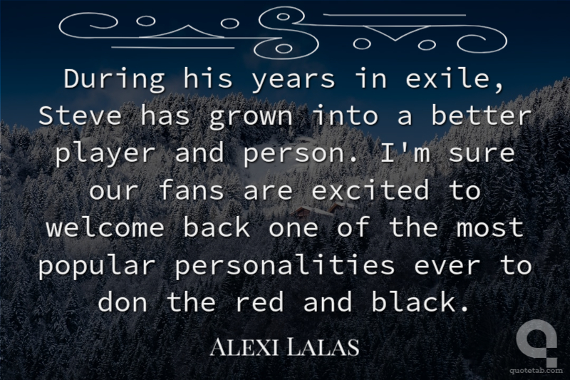 During his years in exile, Steve has grown into a better player and person. I'm sure our fans are excited to welcome back one of the most popular personalities ever to don the red and black.