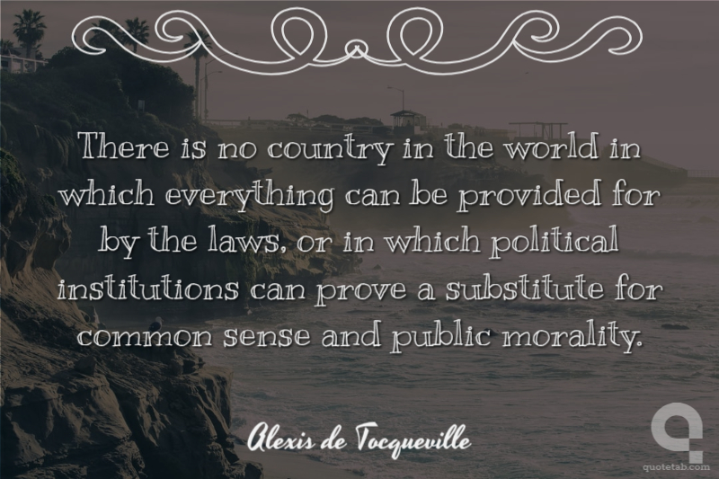 There is no country in the world in which everything can be provided for by the laws, or in which political institutions can prove a substitute for common sense and public morality.