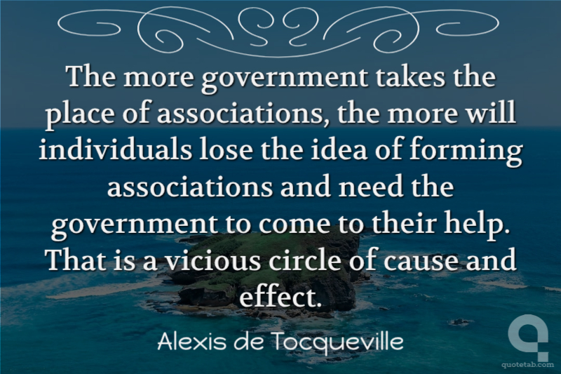 The more government takes the place of associations, the more will individuals lose the idea of forming associations and need the government to come to their help. That is a vicious circle of cause and effect.