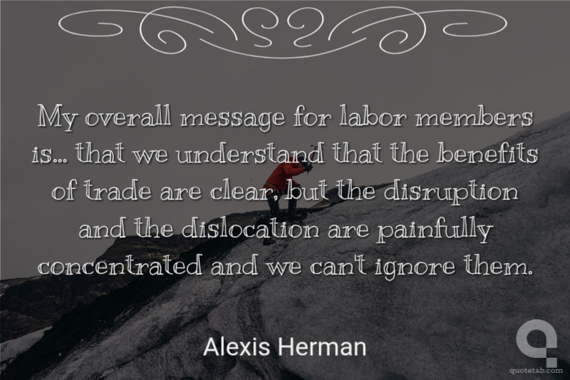 My overall message for labor members is... that we understand that the benefits of trade are clear, but the disruption and the dislocation are painfully concentrated and we can't ignore them.
