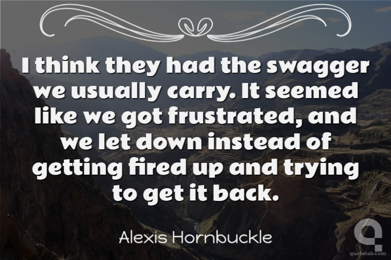I think they had the swagger we usually carry. It seemed like we got frustrated, and we let down instead of getting fired up and trying to get it back.