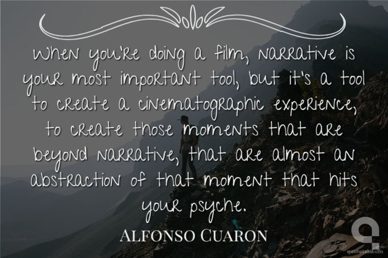 When you're doing a film, narrative is your most important tool, but it's a tool to create a cinematographic experience, to create those moments that are beyond narrative, that are almost an abstraction of that moment that hits your psyche.