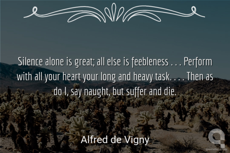 Silence alone is great; all else is feebleness . . . Perform with all your heart your long and heavy task. . . . Then as do I, say naught, but suffer and die.