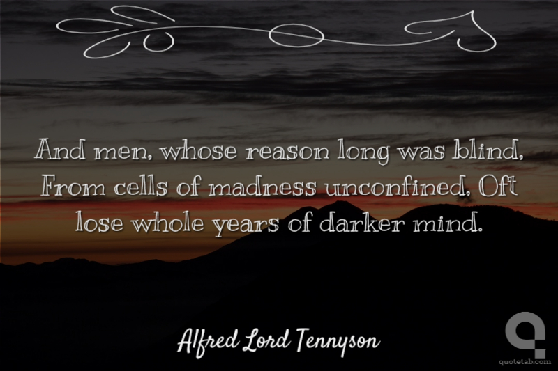 And men, whose reason long was blind, From cells of madness unconfined, Oft lose whole years of darker mind.