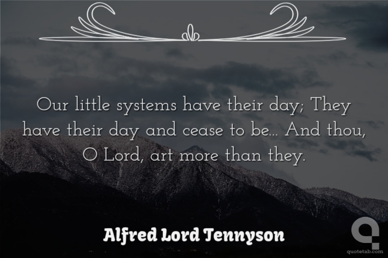 Our little systems have their day; They have their day and cease to be… And thou, O Lord, art more than they.
