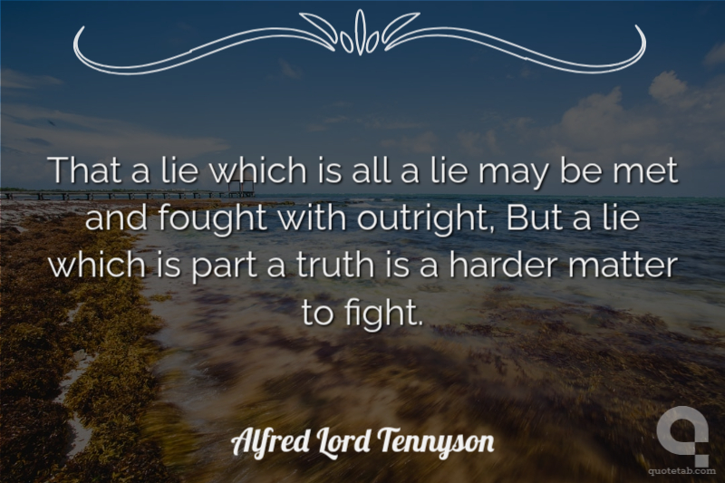 That a lie which is all a lie may be met and fought with outright, But a lie which is part a truth is a harder matter to fight.