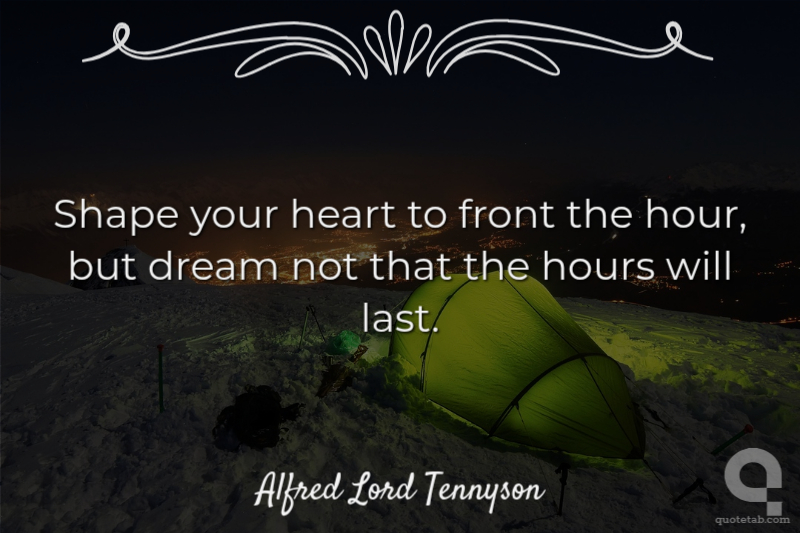 Dark house, by which once more I stand Here in the long unlovely street, Doors, where my heart was used to beat So quickly, waiting for a hand, A hand that can be clasp'd no more - Behold me, for I cannot sleep, And like a guilty thing I creep At earliest morning to the door. He is not here; but far away The noise of life begins again, And ghastly thro' the drizzling rain On the bald street breaks the blank day.
