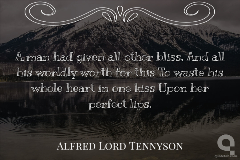 A man had given all other bliss, And all his worldly worth for this To waste his whole heart in one kiss Upon her perfect lips.