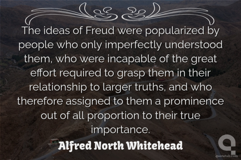 The ideas of Freud were popularized by people who only imperfectly understood them, who were incapable of the great effort required to grasp them in their relationship to larger truths, and who therefore assigned to them a prominence out of all proportion to their true importance.