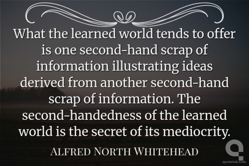 What the learned world tends to offer is one second-hand scrap of information illustrating ideas derived from another second-hand scrap of information. The second-handedness of the learned world is the secret of its mediocrity.
