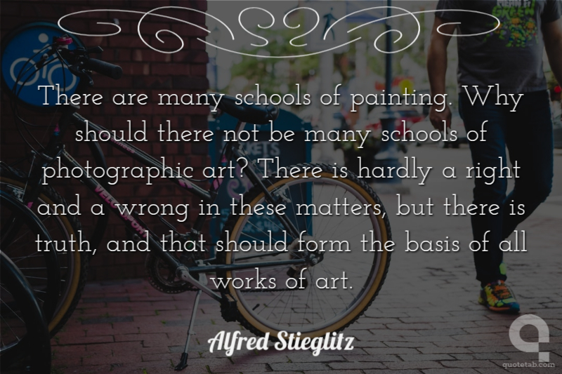 There are many schools of painting. Why should there not be many schools of photographic art? There is hardly a right and a wrong in these matters, but there is truth, and that should form the basis of all works of art.