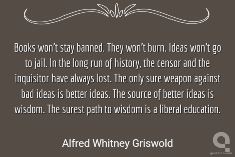 Books won't stay banned. They won't burn. Ideas won't go to jail. In the long run of history, the censor and the inquisitor have always lost. The only sure weapon against bad ideas is better ideas. The source of better ideas is wisdom. The surest path to wisdom is a liberal education.
