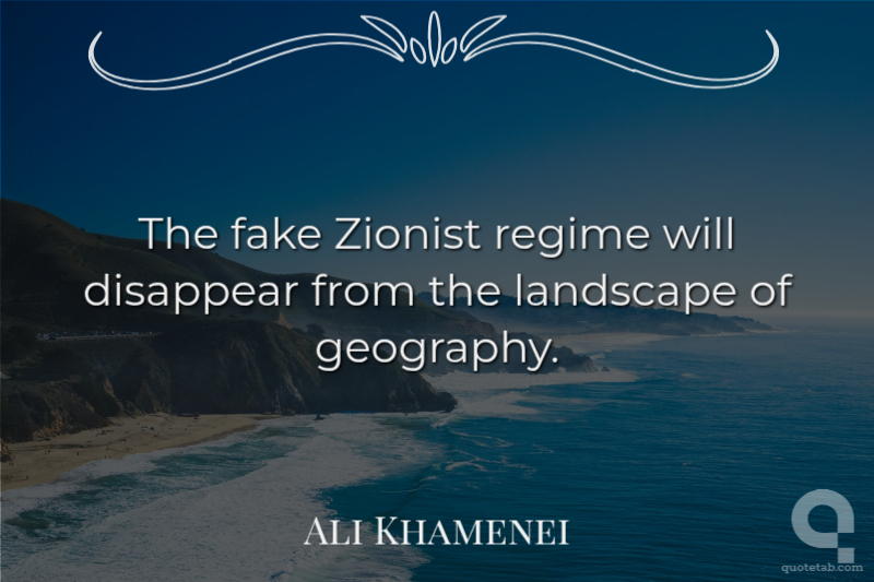 From now on, in any place, if any nation or any group confronts the Zionist regime, we will endorse and we will help. We have no fear expressing this... The Zionist regime is a cancerous tumor that must be removed, and God willing it will be.