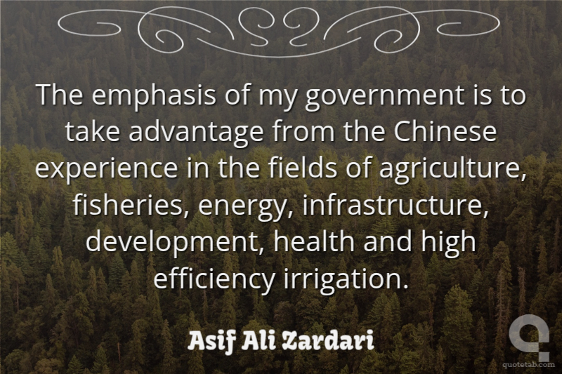 The emphasis of my government is to take advantage from the Chinese experience in the fields of agriculture, fisheries, energy, infrastructure, development, health and high efficiency irrigation.