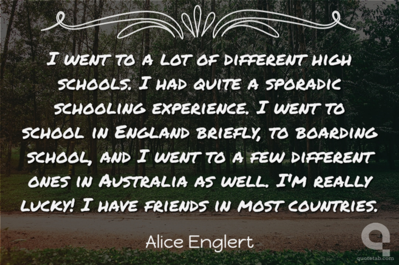 I went to a lot of different high schools. I had quite a sporadic schooling experience. I went to school in England briefly, to boarding school, and I went to a few different ones in Australia as well. I'm really lucky! I have friends in most countries.