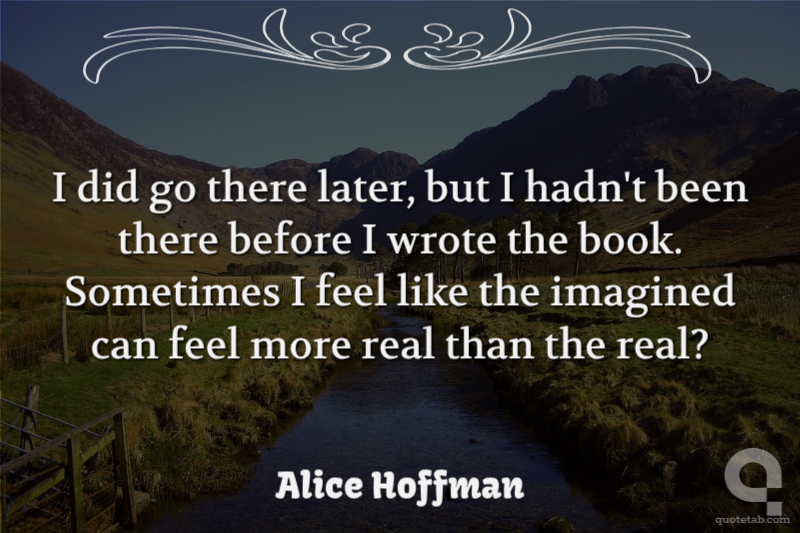 I did go there later, but I hadn't been there before I wrote the book. Sometimes I feel like the imagined can feel more real than the real?