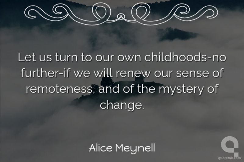 Let us turn to our own childhoods-no further-if we will renew our sense of remoteness, and of the mystery of change.