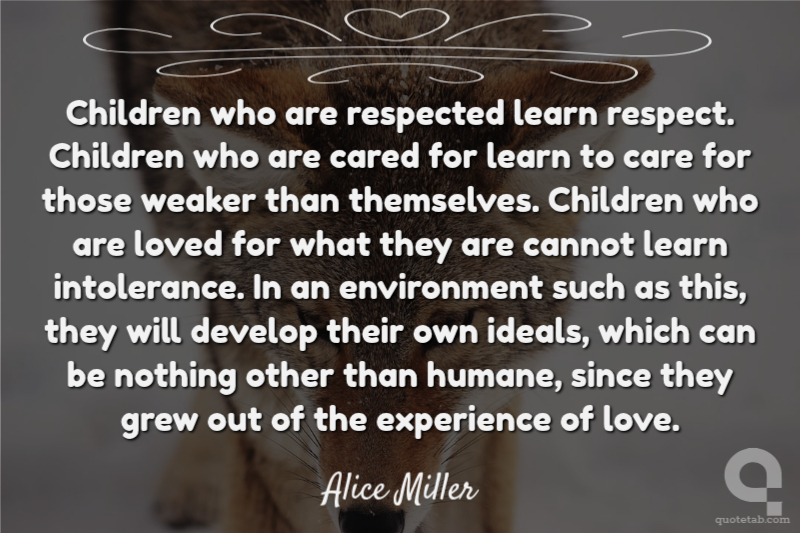 Children who are respected learn respect. Children who are cared for learn to care for those weaker than themselves. Children who are loved for what they are cannot learn intolerance. In an environment such as this, they will develop their own ideals, which can be nothing other than humane, since they grew out of the experience of love.