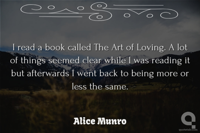 I read a book called The Art of Loving. A lot of things seemed clear while I was reading it but afterwards I went back to being more or less the same.