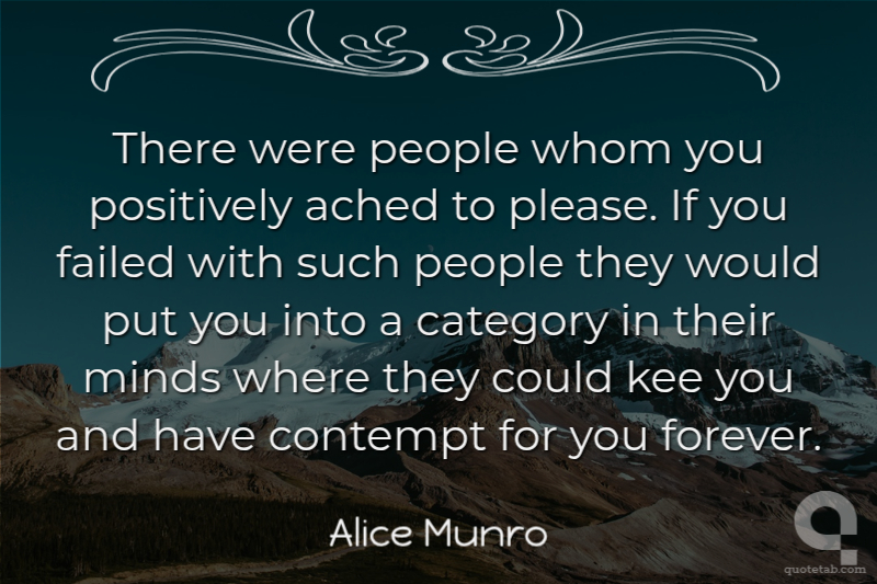 There were people whom you positively ached to please. If you failed with such people they would put you into a category in their minds where they could kee you and have contempt for you forever.