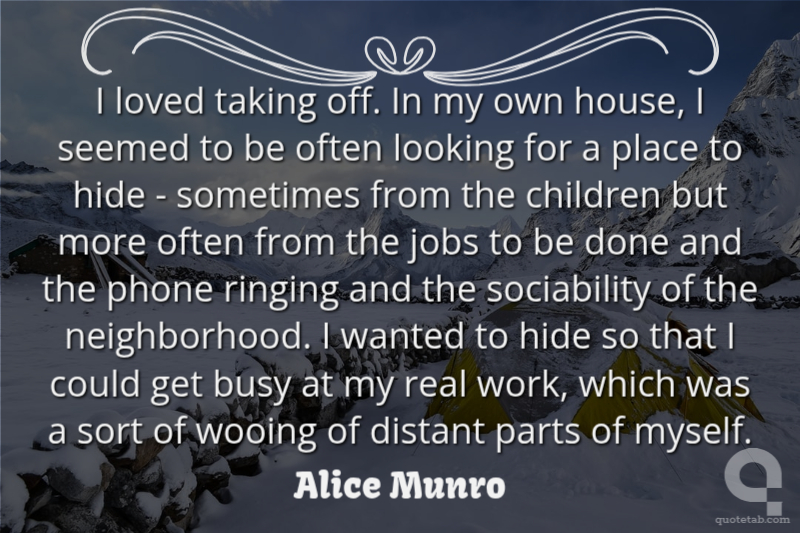 I loved taking off. In my own house, I seemed to be often looking for a place to hide - sometimes from the children but more often from the jobs to be done and the phone ringing and the sociability of the neighborhood. I wanted to hide so that I could get busy at my real work, which was a sort of wooing of distant parts of myself.