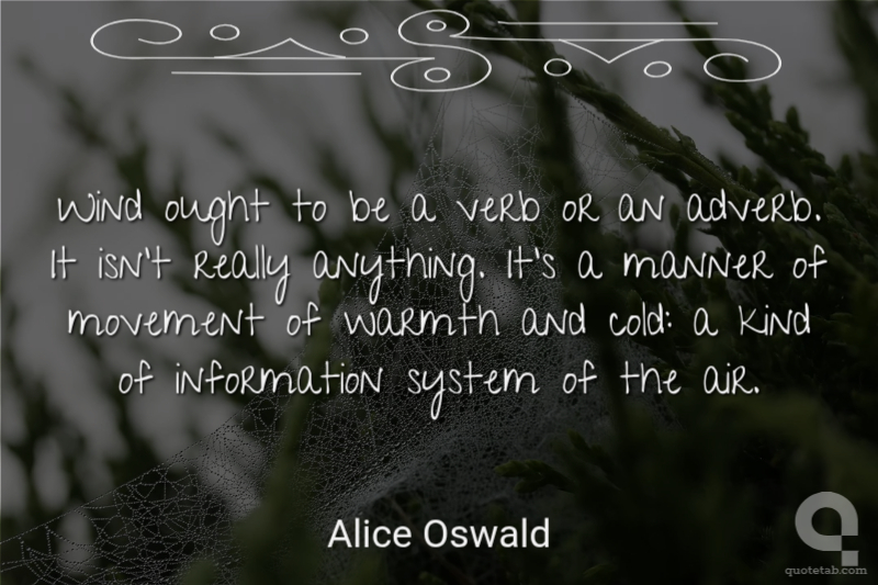 Wind ought to be a verb or an adverb. It isn't really anything. It's a manner of movement of warmth and cold: a kind of information system of the air.