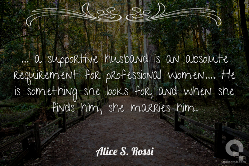 ... a supportive husband is an absolute requirement for professional women.... He is something she looks for, and when she finds him, she marries him.