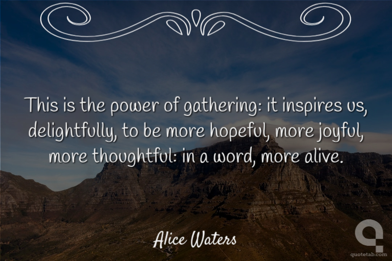 This is the power of gathering: it inspires us, delightfully, to be more hopeful, more joyful, more thoughtful: in a word, more alive.