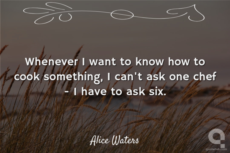 Whenever I want to know how to cook something, I can't ask one chef - I have to ask six.
