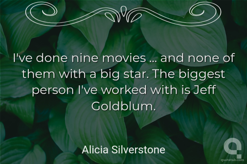 I've done nine movies ... and none of them with a big star. The biggest person I've worked with is Jeff Goldblum.