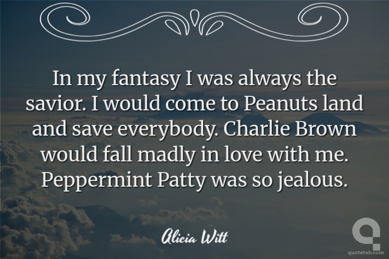 In my fantasy I was always the savior. I would come to 'Peanuts' land and save everybody. Charlie Brown would fall madly in love with me. Peppermint Patty was so jealous.