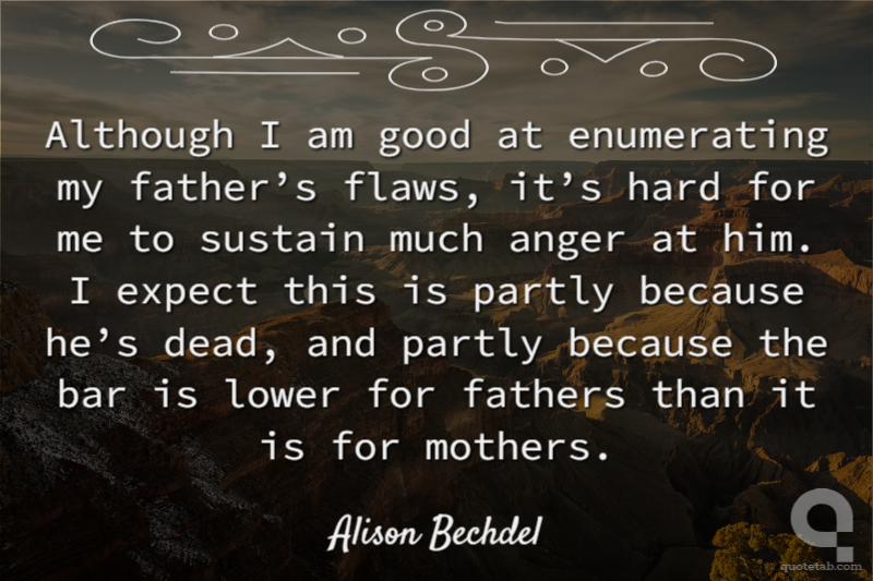 Although I am good at enumerating my father’s flaws, it’s hard for me to sustain much anger at him. I expect this is partly because he’s dead, and partly because the bar is lower for fathers than it is for mothers.