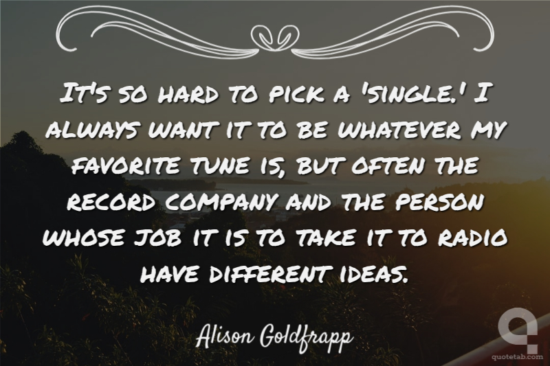 It's so hard to pick a 'single.' I always want it to be whatever my favorite tune is, but often the record company and the person whose job it is to take it to radio have different ideas.